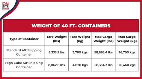 So, how much weight can a 40ft container actually handle? Typically, a standard 40ft container has a maximum gross weight of around 30,480 kilograms (67,200 pounds) . Now, before you get too excited and start loading everything you own, remember to factor in the tare weight. The tare weight, which is the weight of the empty container, is usually around 3,750 to 4,000 kilograms (8,270 to 8,820 pounds). This means the actual payload capacity , or the amount of cargo you can load, is roughly 26,480 to 26,730 kilograms (58,380 to 58,930 pounds). Keep in mind that these numbers can vary slightly depending on the container manufacturer and specific container type. For example, a high cube container, which is taller than a standard container, might have a slightly different weight capacity. Always check the specifications on the container itself to be sure. And don’t forget, these are just the maximum limits . You also need to consider any road restrictions or regulations in the areas you’ll be transporting the container. Some regions have lower weight limits for trucks, which could affect how much you can load into your container. Overloading can lead to fines, delays, and even having your cargo impounded, so it’s always best to play it safe and stay within the specified limits.