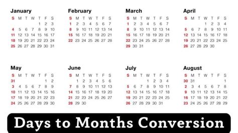 Websites like CalculatorSoup, UnitConverters.net, and even Google’s built-in calculator can handle these conversions with ease. Simply enter the number of days, and the tool will provide you with the equivalent in months, often with several decimal places for added accuracy. These resources are invaluable for professionals and anyone who frequently deals with time conversions.