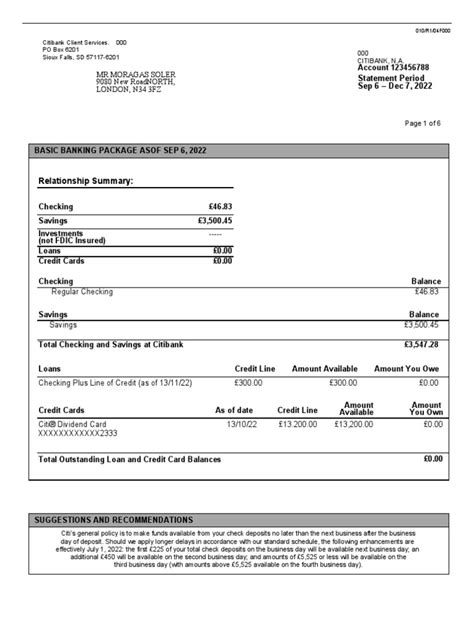 Understanding Your Citibank Statement of Account