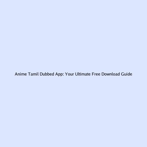 Anime Tamil Dubbed App: Your Ultimate Free Download Guide