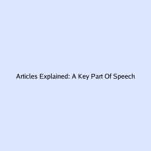 Articles Explained: A Key Part of Speech