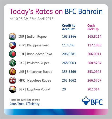 So, why should you care about BFC rates, you ask? Well, if you’re dealing with foreign currencies, they’re pretty much the main thing . Whether you’re an expat sending money back home, a local planning a trip abroad, or even an investor, understanding the exchange rate is critical. BFC is a popular and reliable money transfer and exchange service in Bahrain, so knowing their rates gives you a clear picture of how much your money is actually worth when converted. Fluctuations in rates can significantly impact the amount of money you receive or spend, making it super important to stay informed. Imagine sending money and getting less than you anticipated – yikes ! That’s why keeping an eye on the BFC rates can save you some serious headaches and, potentially, some cash. Think of it as being a smart money-mover. That way you ensure that you are always getting the best deal on every transaction.