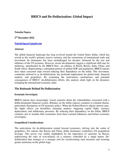 BRICS: De-Dollarization, Security, And Global Influence