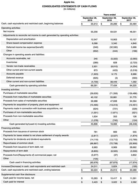 3. Financing Activities: This section includes activities related to raising capital, such as issuing debt or equity, and repaying debt or paying dividends.