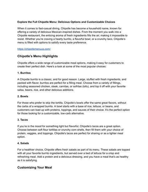 Hey foodies! Let’s dive into the awesome Chipotle Canby menu . If you’re craving some seriously tasty Mexican-inspired eats, you’ve come to the right place. Chipotle is known for its fresh ingredients and customizable bowls, burritos, tacos, and salads, and the Canby location is no exception. We’re going to break down what makes their menu so popular and what you absolutely have to try when you visit. Get ready to plan your next delicious meal!