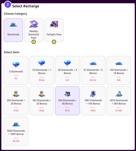 4. Choose Your Diamond Package : Select the diamond package you want to purchase.