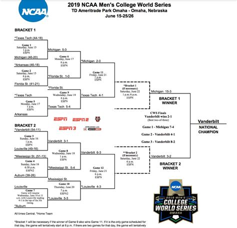 Finally, we arrive at the climax of the entire College World Series bracket: the Championship Series . This is a best-of-three series between the winners of the two brackets. It’s the ultimate showdown, the final test of skill, grit, and determination. The two remaining teams leave everything they have on the field, battling for the right to be called national champions. The tension is thick enough to cut with a knife. Every pitch is scrutinized, every defensive play is magnified, and every at-bat feels like it could decide the fate of the entire series. It’s a true test of a team’s ability to perform under the most extreme pressure. The coaching staffs have worked tirelessly all season, strategizing and preparing their players for this very moment. The players, having overcome so much to get here, are running on pure adrenaline and the dream of etching their names in baseball history. The format of a best-of-three series means that momentum can shift dramatically. A team that loses the first game can come back strong in the second and third, making for incredibly compelling viewing. Managers must make crucial bullpen decisions, and hitters need to deliver in clutch situations. It’s a high-stakes environment where heroes are made and dreams are either realized or dashed. The celebration that erupts when a team clinches the national championship is pure pandemonium. Confetti rains down, players pile on top of each other in joyous embraces, and the coaching staff are mobbed by their ecstatic players. It’s the culmination of a long, arduous season, and the reward for unwavering dedication and hard work. For the losing team, the heartbreak is immense, but they too have achieved something extraordinary by reaching the Championship Series. The College World Series bracket truly represents the peak of college baseball, showcasing incredible talent, compelling narratives, and unforgettable moments. It’s a tournament that captures the hearts of fans and inspires the next generation of players. The journey from the initial selection to the final out of the Championship Series is a testament to the passion, dedication, and competitive spirit that defines college athletics. The culmination of this epic tournament is a moment of pure elation for the victors and a somber realization of the journey’s end for the runners-up. Yet, both sides represent the pinnacle of collegiate achievement in baseball. The final games are often instant classics, etching themselves into the lore of the sport. They are a celebration of everything that makes baseball great: the strategy, the athleticism, the clutch performances, and the unwavering teamwork. The trophy presentation is a culmination of dreams, the ultimate prize for a season of relentless pursuit. The confetti, the cheers, the tears of joy – it’s a scene that every player who competes in college baseball dreams of experiencing. The legacy of that championship team is cemented, remembered for generations to come. It’s the final chapter in the incredible story of the College World Series bracket, a story filled with drama, excitement, and the pursuit of ultimate glory.
