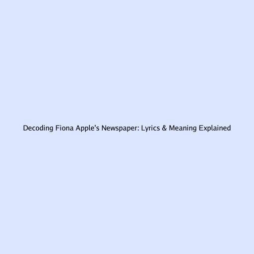 Decoding Fiona Apple's Newspaper: Lyrics & Meaning Explained