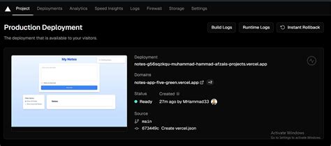 - Logs : You can access your application’s logs directly from the Vercel dashboard, making it easy to troubleshoot issues.