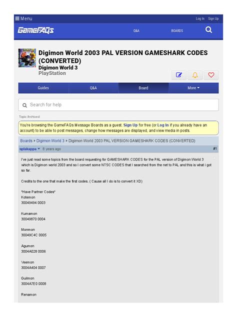 So there you have it, folks! A complete guide to Gameshark codes in the European version of Digimon World 3 . I hope this guide has helped you in getting familiar with how to use these codes, where to find them, and what to keep in mind while using them. Whether you’re a veteran player or new to the game, these codes can be a fun way to customize your experience and try out different strategies.