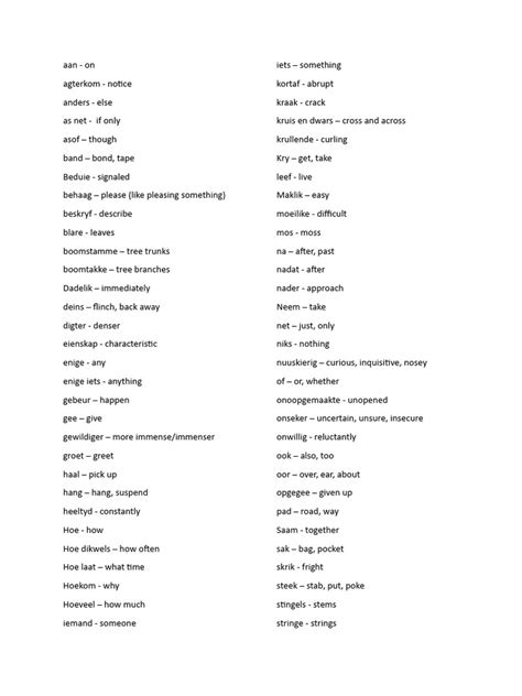 Hey guys! Ever been curious about the Afrikaans language? It’s a fascinating one, full of unique words that might just tickle your fancy. Afrikaans, a language that blossomed from Dutch, has a rich history and a vocabulary that’s both familiar and distinct. We’re going to dive deep into the world of Afrikaans words , exploring their meanings, origins, and the cultural context that makes them so special. You might be surprised at how many of these words can add a bit of flair to your everyday conversations. Whether you’re planning a trip to South Africa, have Afrikaans-speaking friends, or are just a language enthusiast, understanding some core Afrikaans words can open up a whole new world. So, grab a cup of coffee, get comfy, and let’s embark on this linguistic adventure together!