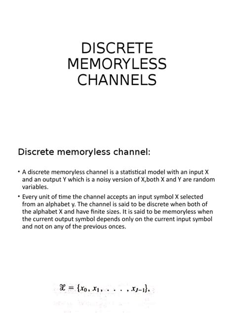 Hey guys! Today, we’re diving deep into the fascinating world of information theory, and our main star is the discrete memoryless channel , or DMC for short. If you’re new to this, don’t sweat it! We’re going to break it down in a way that’s super easy to grasp. Think of a channel as a communication pipe – it’s how we send information from one place to another. Now, a discrete channel means the information going in and coming out can only be one of a finite set of symbols, like letters in an alphabet or digits 0 and 1. And memoryless ? That means the channel’s behavior today has absolutely no bearing on how it’ll behave tomorrow. Each transmission is like a fresh start. So, when we talk about a discrete memoryless channel , we’re essentially talking about a simplified model of communication where symbols are discrete, and past transmissions don’t influence future ones. This fundamental concept is the bedrock of understanding how reliable communication can be, even when there’s noise or interference. We’ll explore what makes a channel discrete and memoryless, look at some real-world examples, and even touch upon how these channels are analyzed using probability. By the end of this, you’ll have a solid understanding of this core information theory concept and why it’s so darn important for everything from your Wi-Fi signal to sending data across the galaxy (okay, maybe not the galaxy just yet, but you get the idea!). Let’s get this info party started!