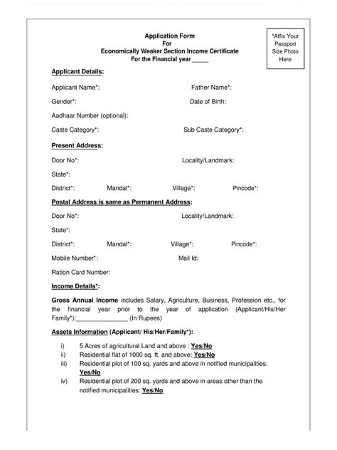 • Fill the Form: Once logged in, find the application form for the EWS certificate. Carefully fill in all the required details. Double-check everything – your name, address, father’s name, income details, asset details, etc. Accuracy is key here!