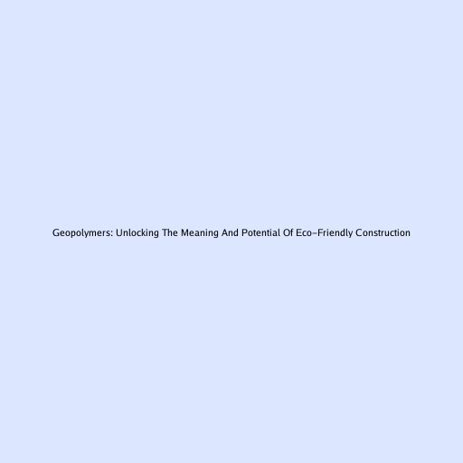 Geopolymers: Unlocking The Meaning And Potential Of Eco-Friendly Construction