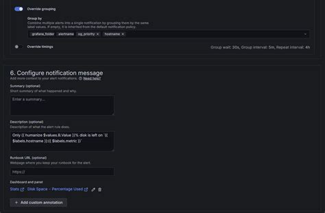 Finally, set up your notifications. Grafana supports various notification channels, including email, Slack, PagerDuty, and more. Configure your notification channel and specify the message you want to receive when the alert triggers. You can also include variables in your notification messages to provide more context. For example, you can include the server name and the current CPU usage in your message.