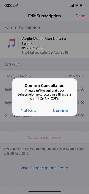 5. Cancel Subscription: At the bottom of the Apple Music subscription details, you’ll see a button that says “Cancel Subscription.” Tap on that.