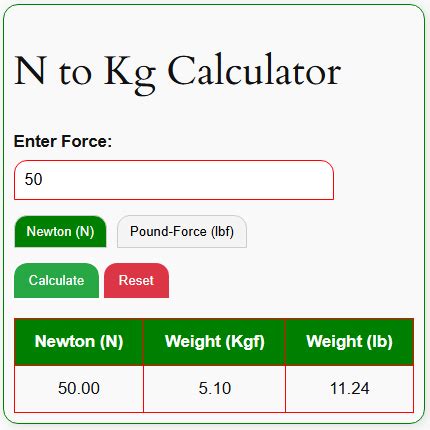 To ensure your Newton to kilogram conversions are as accurate as possible, here are a few tips and tricks to keep in mind. Use the correct value for gravitational acceleration: While 9.81 m/s² is a good approximation for most locations on Earth, the actual value can vary slightly depending on your altitude and latitude. For highly precise calculations, you can find the specific gravitational acceleration for your location using online resources or scientific tools. Be mindful of units: Always double-check that you’re using the correct units for force (Newtons) and mass (kilograms). Mixing up units can lead to significant errors in your calculations. Use a calculator or conversion tool: To avoid manual calculation errors, consider using a calculator or online conversion tool. There are many free and reliable resources available that can quickly and accurately convert between Newtons and kilograms. Round appropriately: Depending on the level of precision required, round your final answer to an appropriate number of decimal places. For most practical applications, rounding to two or three decimal places is sufficient. Understand significant figures: Pay attention to significant figures when performing calculations. The number of significant figures in your answer should be consistent with the number of significant figures in your input values. Double-check your work: Before finalizing your conversion, take a moment to double-check your calculations and ensure that your answer makes sense in the context of the problem. By following these tips and tricks, you can minimize errors and ensure the accuracy of your Newton to kilogram conversions. Whether you’re working on a scientific project or simply trying to understand product specifications, accurate conversions are essential for making informed decisions.