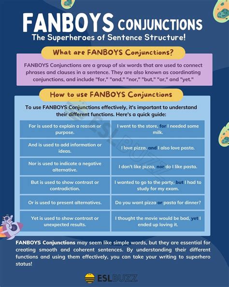 Remember, the key to mastering conjunctions is practice. The more you write, the more comfortable you’ll become with using these words naturally and effectively. So, don’t be afraid to experiment, make mistakes, and learn from them. And most importantly, have fun with it! Comic book writing should be a passion, and conjunctions are there to help you express that passion with skill and flair. Now go forth and conquer the comic book world, one well-connected sentence at a time! You got this!
