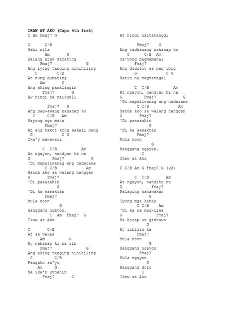 Hey guys! Ever wanted to learn how to play “Ikaw at Ako” on your guitar but felt like the capo was just one step too far? Well, you’re in the right place! We’re diving deep into the world of “Ikaw at Ako” chords, specifically focusing on how to play this beautiful song without using a capo . This is perfect for beginners and seasoned guitar players alike who want an accessible and easy way to strum along to this classic Filipino love song. So grab your guitars, and let’s get started. We’ll break down the chords, strumming patterns, and provide some tips and tricks to make your playing sound fantastic. This guide will make it super easy for you to play along, whether you’re jamming with friends or serenading someone special. It’s all about making music fun and accessible, right?