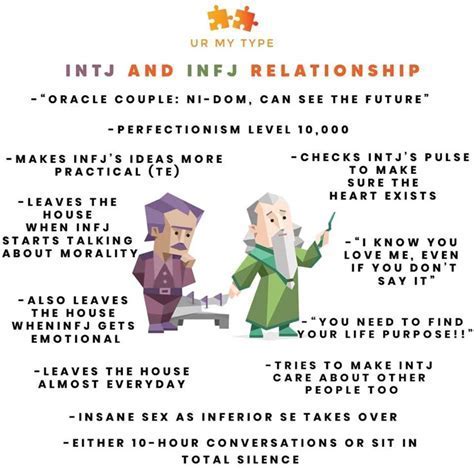 Okay, so why are INTJ and INFJ relationships so captivating? Well, it all starts with their shared love for deep conversations and meaningful connections. Both types are introverted and enjoy a good, thought-provoking discussion. They value authenticity and intellectual stimulation, which creates a strong foundation. For the INTJ , who leads with Introverted Intuition (Ni) followed by Extraverted Thinking (Te), the INFJ’s ability to understand complex ideas and their strategic mind is super attractive. INTJs value competence and seek partners who can engage their intellect. Think of it like this: the INTJ brings the grand strategy, and the INFJ brings the understanding of how that strategy impacts people. This creates a balance of practicality and empathy. The INFJ, on the other hand, is drawn to the INTJ’s sharp intellect and decisive nature. They see the potential for growth and appreciate the INTJ’s focus and drive. INFJs often lead with Ni and are driven by their values; they can see the INTJ’s potential for good, even if the INTJ initially presents as aloof or critical. This dynamic can be incredibly fulfilling, as they push each other to become better versions of themselves. It’s also worth mentioning that both types have a strong sense of independence and need their own space to recharge. This mutual respect for personal boundaries is often crucial for long-term success. So, what makes this partnership so appealing? Essentially, it’s a meeting of minds and hearts. They can have a really profound understanding of each other, built on intellectual stimulation, shared values, and mutual respect. This connection can feel like finding your intellectual soulmate, someone who just gets you on a fundamental level. Now, let’s see what makes this relationship so special!