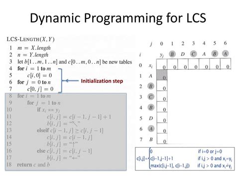 2. Filling the Table: Now, we’ll fill in the rest of the table using the recurrence relation. We iterate through the table, row by row and column by column, starting from dp[1][1] . For each cell dp[i][j] , we compare the characters X[i-1] and Y[j-1] . Note that we subtract 1 from i and j because the strings are 0-indexed, while the table is 1-indexed.