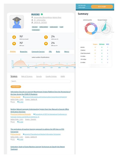 • Influence Analysis: The use of machine learning can determine the most influential articles, authors, and research institutions in the respective fields. This will help SINTA journals to identify valuable contributions and promote impactful research. By analyzing citation networks and relationships, ML can identify the most frequently cited articles and the authors that are leading the charge in a given field. This knowledge can also inform strategic decisions related to content development, marketing, and editorial focus.