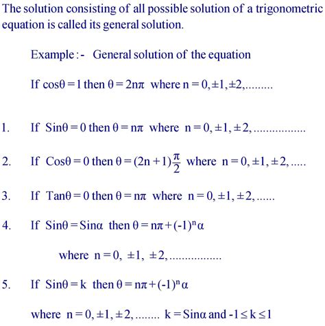 Trigonometric functions are periodic , meaning their values repeat after a certain interval. This is a crucial concept when solving trigonometric equations because it means that there are infinitely many solutions to most equations. The periodicity of sine and cosine is 2π, while the periodicity of tangent is π. This means that if θ is a solution to an equation involving sine or cosine, then θ + 2πk is also a solution for any integer k. Similarly, if θ is a solution to an equation involving tangent, then θ + πk is also a solution for any integer k.