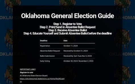 • Official Source: Always refer to the Oklahoma State Election Board for the most accurate and up-to-date election dates and information. They will have the definitive election calendar.