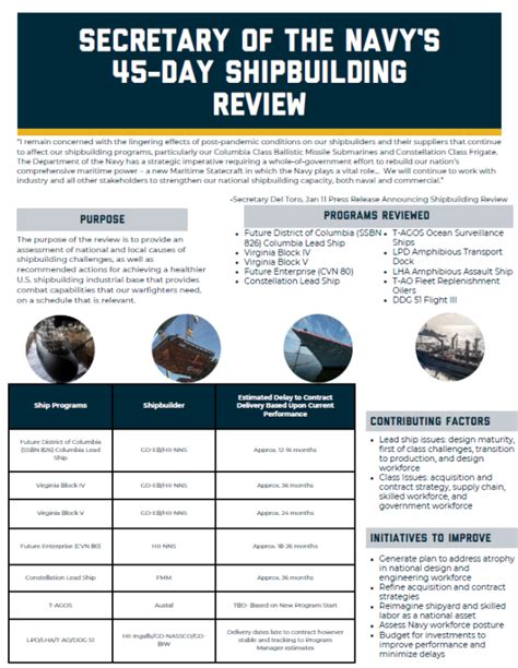 Another crucial aspect is investing in a skilled workforce and training programs . Shipbuilding requires a highly skilled workforce, from engineers and designers to welders and electricians. Investing in training programs can help to ensure that the workforce has the skills needed to build modern warships. One of the main challenges is to attract and retain skilled workers. Shipbuilding is a complex process, and the industry is competing with other industries for skilled workers. The establishment of apprenticeship programs and vocational training is a good solution, it can help to develop a skilled workforce and provide opportunities for people to learn the skills needed for shipbuilding. These programs provide hands-on training and real-world experience. Another important thing is to provide ongoing professional development opportunities for the existing workforce. This can help workers to stay up-to-date with the latest technologies and best practices. Investing in research and development is also important. R&D can help to develop new technologies and improve shipbuilding processes. Finally, investing in a skilled workforce and training programs can help to improve the quality of the ships that are built and reduce construction time and costs. All of these factors ensure that the ships that will be built will be of the highest quality. This allows the shipbuilding industry to attract and retain skilled workers, and it can help to ensure that the U.S. Navy has the ships it needs to protect the country.