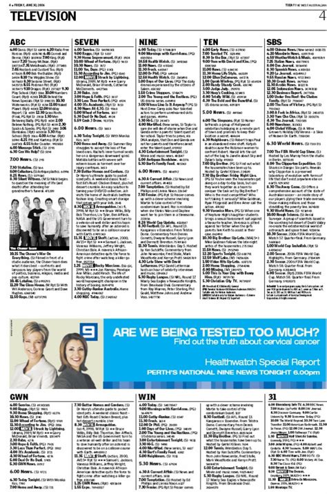 I hope this makes finding your favourite shows in Perth a breeze. No more channel surfing confusion! Enjoy your viewing, guys!