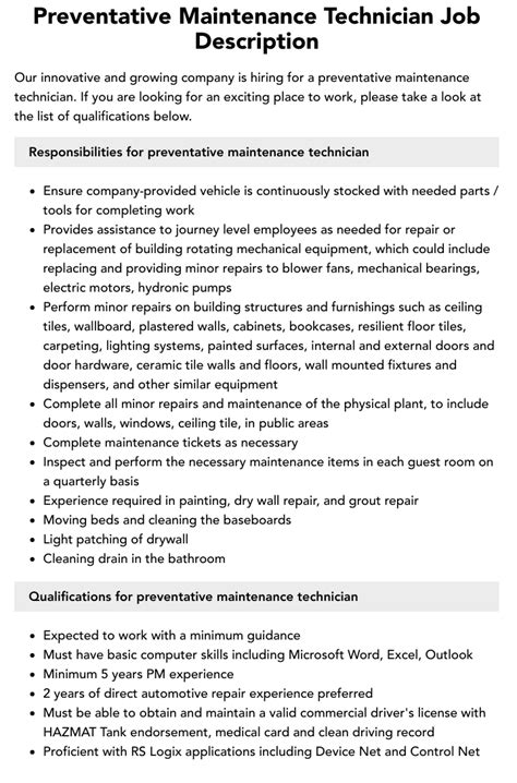 Preventive Maintenance Technician: Your Job Guide