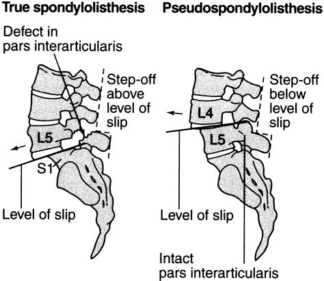 Before we get too deep into the weeds of pseudospondylolisthesis, let’s do a quick refresher on what makes our spines tick. Our spine, or vertebral column, is this amazing, flexible structure made up of individual bones called vertebrae, stacked on top of each other. Between most of these vertebrae, you’ve got these cushiony discs – think of them as shock absorbers. The whole setup is held together by a bunch of ligaments and muscles, giving us the ability to stand tall, bend, and twist. Each vertebra has different parts, but for our chat today, the crucial bit is the pars interarticularis . This is a small segment of bone that connects the facet joint in the front to the facet joint in the back of the vertebra. It’s like a tiny bridge that keeps things stable. In isthmic spondylolisthesis, this pars gets stressed, often from repetitive hyperextension (think gymnastics or football players), and can develop a stress fracture. This fracture allows the vertebra above to slip forward. Now, in pseudospondylolisthesis , that pars interarticularis isn’t fractured. So, what gives? It’s usually due to degenerative changes . Over time, the facet joints, which are the little connectors between your vertebrae, can become worn out, arthritic, or just generally weakened. Imagine the joints getting a bit loose and wobbly. This can allow one vertebra to slide forward on the one below it, even without a pars fracture. Other less common causes can include significant disc degeneration, where the disc loses its height and ability to support the vertebra, or even certain developmental conditions present from birth. So, while the end result – a slipped vertebra – might look similar to isthmic spondylolisthesis on an X-ray, the underlying reason is different, and that’s a pretty big deal when it comes to treatment and prognosis. Understanding this anatomy is key to grasping why pseudospondylolisthesis happens and how it differs from its more common sibling.