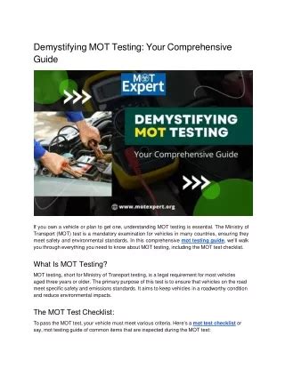 Understanding the MOT Test: More Than Just a Check