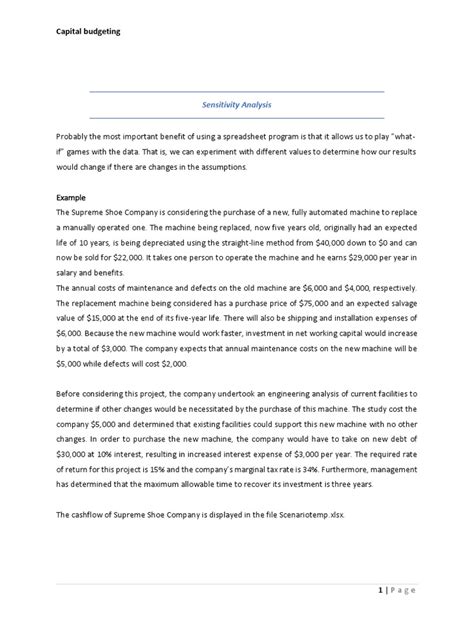 Hey guys! Let’s dive deep into the world of capital budgeting and talk about a super important technique that helps us make smarter investment decisions: sensitivity analysis . You know, when we’re talking about big, long-term projects, there’s a ton of uncertainty involved. We’re making educated guesses about future revenues, costs, and economic conditions. That’s where sensitivity analysis comes in clutch! It’s like a crystal ball, but way more scientific, helping us understand how changes in our key assumptions might impact the project’s profitability. Basically, we want to figure out which variables have the biggest bang for their buck – or, in this case, the biggest potential to sink our project. By tweaking one variable at a time – like the selling price of our product or the cost of raw materials – and seeing how it affects our Net Present Value (NPV) or Internal Rate of Return (IRR), we get a clearer picture of the risks involved. It’s not about predicting the future perfectly, but about understanding the potential future outcomes and being prepared. This is absolutely crucial for any business looking to invest significant capital, because nobody wants to pour money into a project that ends up being a total dud, right? We’ll explore how to perform this analysis, what it tells us, and why it’s a non-negotiable part of a solid capital budgeting process. Stick around, because understanding sensitivity analysis can seriously level up your financial decision-making game!