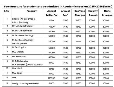 Okay, let’s get into the specifics! Typically, the fee structure at SMVDU is divided into several key areas: Tuition Fees , which cover your actual classes and academic resources; Development Fees , contributing to the university’s infrastructure and facilities; Examination Fees , for conducting your semester exams; Library Fees , giving you access to books and research materials; and Other Fees , which might include student activities and miscellaneous expenses. Hostel fees are separate, and depend on whether you opt for university accommodation. The tuition fees are the most significant part, usually covering the bulk of the expense. Development fees help the university maintain and upgrade its facilities, ensuring a conducive learning environment. Examination fees are a standard part of any academic program, covering the costs of conducting and evaluating exams. Library fees are crucial for accessing the resources you need for your studies and research. Other fees might cover various student activities, workshops, and other university-related events that enrich your overall experience. If you plan to stay in the hostel, you’ll need to factor in hostel fees, which include accommodation, meals, and other amenities. Always check the latest official fee structure on the SMVDU website, as fees can change from year to year. Make sure to also inquire about any available scholarships or fee waivers that you might be eligible for. Understanding this detailed breakdown will empower you to plan your finances effectively and ensure a smooth academic journey at SMVDU. Knowing exactly what you’re paying for can alleviate any financial stress and allow you to focus on your studies.