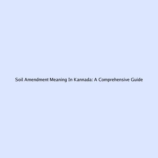 Soil Amendment Meaning In Kannada: A Comprehensive Guide