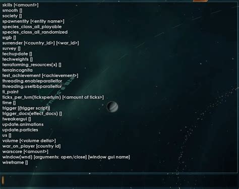 Sometimes, you don’t want to change things; you just want to understand them. The debugging and information commands in Stellaris are invaluable for this purpose. They peel back the layers of the game’s simulation, revealing the intricate mechanics at play. The debug_info command is a fantastic starting point. When activated, it displays a wealth of information directly on your screen, including detailed stats for your ships, planets, pops, and much more. It’s like having a real-time analytics dashboard for your empire. Another crucial command is debug_mode . While it doesn’t grant direct powers, it enables a host of other helpful debug commands and reveals more information in tooltips. It’s often a prerequisite for using other, more advanced commands. For players interested in the economic simulation, commands that show detailed resource breakdowns or population happiness levels can be incredibly useful. You can often access this by hovering over specific elements after enabling debug_info or debug_mode . For those who want to see the raw data behind your empire’s performance, there are often commands that can dump information into log files. For instance, gui commands can sometimes be used to display or hide specific UI elements, helping you focus on the information you need. The Stellaris arcane console commands related to debugging are not about bending the rules of the game but about understanding the rules themselves. They are for the curious player, the one who wants to know why their fleet is performing a certain way, or why a particular planet is underperforming. By using these commands, you gain a deeper appreciation for the complexity of Stellaris and can use that knowledge to make more informed decisions, even without resorting to ‘cheats’. It’s about mastering the simulation, not just playing it.