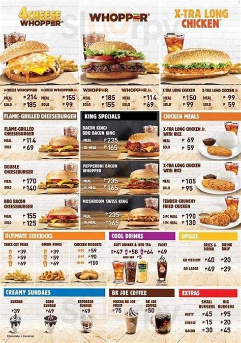 Alright guys, we’ve talked burgers, chicken, and sides, but what’s a meal without a little something sweet to finish it off? Burger King has some delicious options to satisfy your sweet tooth. First up, the Hershey’s Sundae Pie . This is pure chocolatey heaven. It’s a rich, chocolatey pie with a cookie crust, topped with a creamy chocolate frosting and chocolate chips. If you’re a chocolate lover, this is an absolute must-try. It’s decadent, satisfying, and the perfect ending to any savory meal. Another popular choice is the Oreo Cookie Shake . Who doesn’t love a good milkshake? This one is blended with chunks of Oreo cookies, making it thick, creamy, and packed with that classic Oreo flavor. It’s like drinking your favorite cookie – pure bliss! Burger King also offers other shake flavors, like vanilla and chocolate, so you can always get your fix. And let’s not forget about the Cheesecake Bites . These little bites of heaven are perfect for sharing (or not!). They’re creamy, sweet, and offer a delightful cheesecake flavor in a convenient, bite-sized package. They’re a great way to get your dessert fix without committing to a whole pie. Beyond the dedicated desserts, you can also often find soft-serve ice cream options, which are always a good bet for a simple, cool treat. The variety of desserts means you can choose something light or go all out. Maybe a slice of pie is too much, but a few cheesecake bites are just right. Or if you’re really craving something indulgent, that Oreo shake is calling your name. The key is that Burger King offers these sweet treats so you can cap off your meal perfectly. And what about the drinks, you ask? They have all the standard sodas you’d expect – Coke, Diet Coke, Sprite, and so on. But they also often have specialty beverages like iced coffees, frozen slushes, and lemonade, especially during different seasons. These drinks can really enhance your meal and provide that refreshing balance to the savory flavors. So whether you’re craving a chocolate explosion, a cookie-flavored shake, or just a classic soda, Burger King has you covered. Don’t skip the dessert and drink menu – it’s the cherry on top (literally, sometimes!) of your Burger King experience. It’s the final flourish that makes your meal complete and satisfying. So next time you’re there, make sure to leave a little room for something sweet and refreshing!