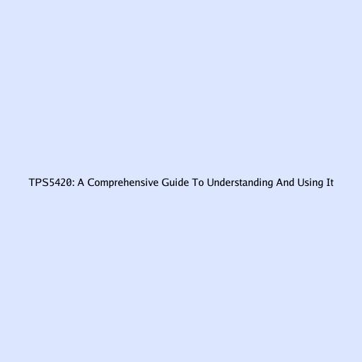 TPS5420: A Comprehensive Guide To Understanding And Using It