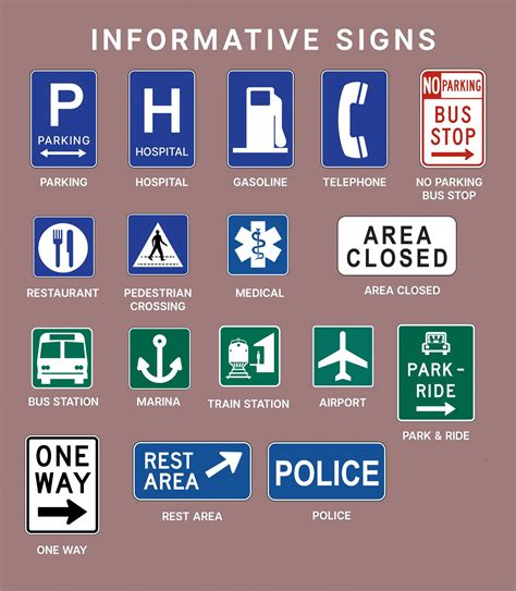 Guide signs, also known as informational signs, are basically your GPS in visual form. They’re designed to provide information about routes, directions, destinations, and points of interest. Think of them as the friendly road signs that are always there to help you find your way. These signs are essential for navigating unfamiliar areas and ensuring you reach your destination efficiently. Unlike regulatory and warning signs, guide signs are typically green, blue, or brown. Green signs are used for directional information on highways and major roads. Blue signs indicate services such as rest areas, hospitals, and gas stations. Brown signs typically point to recreational or cultural areas, such as parks, historical sites, and museums. Here are a few examples to illustrate: Highway Exit Signs : These green signs provide advance notice of upcoming exits on highways. They typically include the exit number, the name of the road or city the exit leads to, and directional arrows. These signs are crucial for planning your route and avoiding missed exits. Destination Signs : These signs display the names of cities, towns, or other destinations along a particular route. They help you track your progress and confirm that you’re heading in the right direction. Rest Area Signs : These blue signs indicate the location of rest areas along the highway. They typically include a symbol of a picnic table and may also indicate the availability of restrooms and other amenities. Hospital Signs : These blue signs direct you to nearby hospitals. They are easily recognizable by the symbol of a white “H” on a blue background. Park and Recreation Signs : These brown signs point to parks, campgrounds, historical sites, and other recreational areas. They often include symbols representing the activities available at the location, such as hiking, fishing, or camping. Street Name Signs : These signs, usually green or blue, display the name of the street you are currently on. They are essential for navigating city streets and finding specific addresses. Guide signs play a vital role in making travel easier and more efficient. They provide the information you need to navigate unfamiliar areas, find services, and discover points of interest. Always pay attention to these signs and use them to plan your route and stay on track. They are your trusty guides, helping you explore new places and reach your destination with confidence. So keep an eye out for those green, blue, and brown signs – they’re there to help you on your journey!