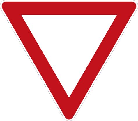 • Give Way: A downward-pointing triangle. It tells you to yield to traffic on the main road.