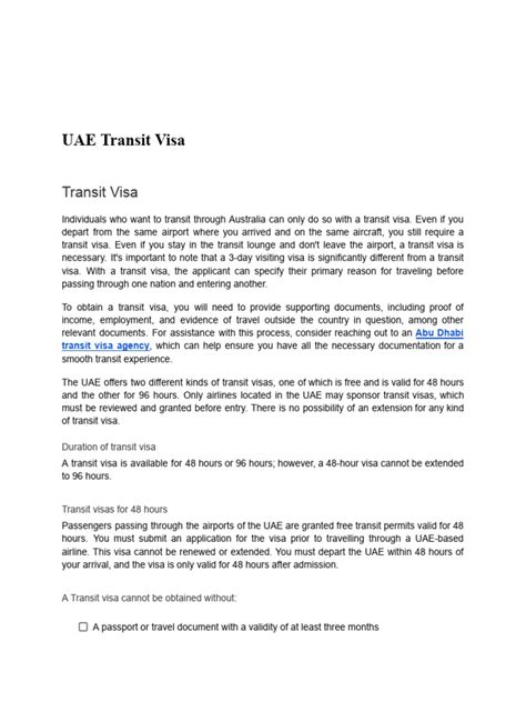 Now, let’s break down the essential documents checklist you’ll need for your UAE transit visa application . Think of this as your treasure map to getting out of the airport and into the dazzling cities of Dubai or Abu Dhabi . First off, you’ll need a clear, colored copy of your passport’s bio-page. Make sure all your details are visible and legible. Next, a recent passport-sized photograph is usually required – think standard visa photo specs, light background, clear face. Of course, those all-important confirmed flight tickets for your entire journey are non-negotiable, showing both your arrival in the UAE and your departure to your next destination. If you’re planning to stay overnight, or for the full 96 hours, having a confirmed hotel reservation in the UAE might also be requested. While not always mandatory for the visa itself, it’s a good idea to have it ready, and it’s certainly wise for your comfort during your stopover in Dubai or Abu Dhabi . Some airlines or visa processing centers might also ask for your visa to your final destination, especially if you require one. This is to ensure you’re genuinely transiting and have legal entry to your next country. Always remember, the documents required can sometimes vary slightly based on your nationality and the airline sponsoring your visa, so it’s always best practice to check the specific requirements with your chosen airline or the UAE consulate in your country before you travel. Gathering all these transit visa documents in advance will save you a lot of stress and ensure your Abu Dhabi stopover requirements or Dubai transit requirements are met without a hitch!