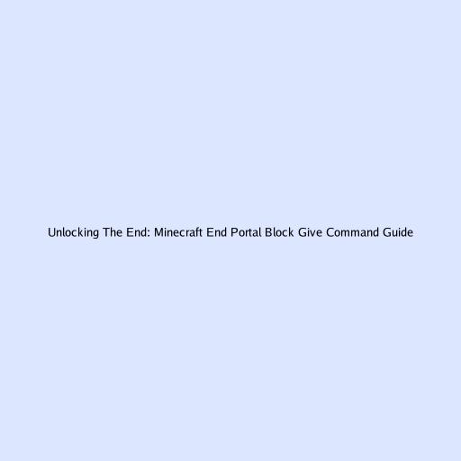 Unlocking The End: Minecraft End Portal Block Give Command Guide