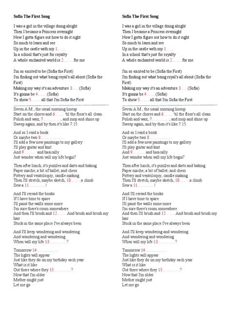 So, there you have it! We’ve journeyed deep into the lyrics of Princess Sofia the First , discovering the magic behind the songs and the valuable life lessons they contain. From the emphasis on kindness and friendship to the encouragement of self-discovery and integrity, these songs have something special to offer. Each song is carefully crafted to be catchy, memorable, and impactful. The lyrical devices and structures are all there to enhance memorability and give depth to the message.