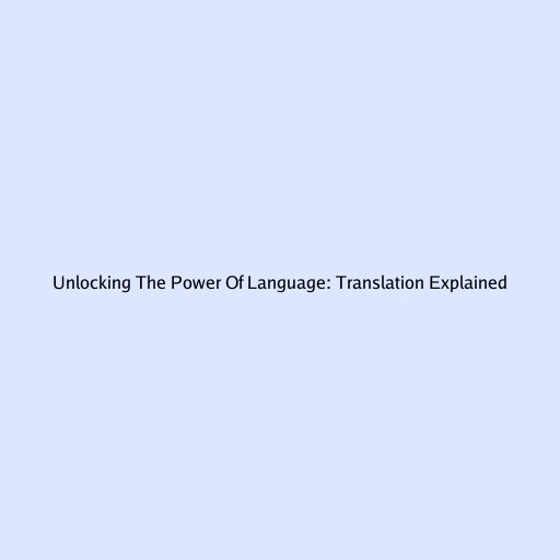 Unlocking the Power of Language: Translation Explained