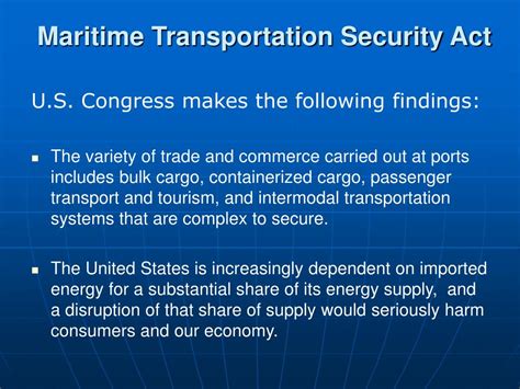 Hey everyone! Let’s dive into something super important for all of us: the US Maritime Transportation Security Act of 2002 , often called the MTSA. This isn’t just some dusty old law; it’s a cornerstone of how we keep our ports, ships, and waterways safe, especially after the big events of 9 11 . You guys know how crucial maritime trade is, right? It’s how a huge chunk of our stuff gets here and how we send our goods out. So, making sure these operations are secure isn’t just a good idea, it’s a necessity. The MTSA was a direct response to those fears and vulnerabilities exposed in 2001, aiming to beef up security across the entire maritime sector. It set the stage for a whole new era of regulations and practices designed to prevent terrorism and other nasty stuff from disrupting this vital industry. Think of it as the ultimate upgrade to our maritime defenses. This act didn’t just point fingers; it laid out clear responsibilities for the government, port authorities, vessel operators, and even the workers. It mandated things like security plans, training, and better communication, creating a more robust and integrated security network. So, buckle up as we break down what this act is all about, why it matters, and how it continues to shape maritime security today. It’s a pretty complex piece of legislation, but at its heart, it’s all about keeping our nation’s trade flowing and our people safe. Let’s get into the nitty-gritty of how the MTSA works and why it’s still a big deal!
