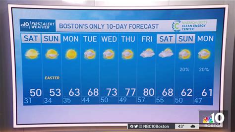 Now, let’s talk about Sunday. Many of you have asked about Sunday, and the good news is, it’s looking a tad better than Saturday in terms of overall warmth and sunshine. We’re expecting more sunshine throughout the day, with fewer clouds generally. This will allow temperatures to climb a bit higher than on Saturday. Highs on Sunday are predicted to reach into the low to mid-70s . That’s more like it, right? Perfect weather for those outdoor brunch plans or perhaps a leisurely stroll through the Boston Public Garden. The morning might still start off a bit cool, similar to Saturday, but the sunshine will quickly warm things up. There’s still a slight chance of a passing shower , particularly in the afternoon, but the probability is lower than what we saw for Saturday. These showers, if they do pop up, are expected to be brief and isolated, so don’t let it deter your plans entirely. It’s always wise to keep an eye on the radar just in case. The winds will likely shift slightly, coming more from the south, which will help usher in that warmer air. So, Sunday is shaping up to be a fantastic day to be outside and enjoy the best of what Boston has to offer. Grab your sunglasses, maybe a light jacket for the morning and evening, and get ready for a really enjoyable day.