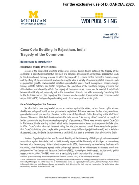 The Initial Entry and Early Success of Coca-Cola in India