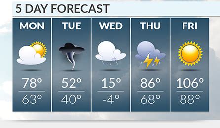 When we talk about the weather report 5 days out, one of the first things everyone wants to know is about the temperature. Will it be a scorcher, or will you need to bundle up? The temperature forecast is usually broken down into daily highs and lows. The high temperature is the predicted peak temperature for the day, typically occurring in the afternoon. The low temperature is the expected coolest point, usually happening just before sunrise. Over a 5-day period, you’ll often see trends. For example, you might notice a warming trend as a warm air mass moves into the region, or a cooling trend as a cold front approaches. These trends are driven by large-scale weather patterns, like the movement of air masses. A continental polar air mass, for instance, is associated with cold, dry air, while a maritime tropical air mass brings warm, moist air. The interaction between these air masses often creates weather fronts, which can bring significant changes in temperature, precipitation, and wind. For us, planning your outfits is the most practical application. If the forecast shows highs in the 80s, you know it’s shorts and t-shirt weather. If it’s dipping into the 40s overnight, you’ll definitely want a jacket and maybe even a hat. It’s also important to consider the feels like temperature, which takes into account factors like humidity and wind chill. On a humid day, 85°F can feel much hotter, and on a windy, cold day, 40°F can feel significantly colder. So, when you check that 5-day forecast, look beyond just the numbers. Consider the daily range, the overall trend, and any factors that might make the temperature feel different. This will help you dress appropriately and plan your activities comfortably. Understanding these temperature nuances is a big part of making the most of your week, no matter what the weather throws at you!
